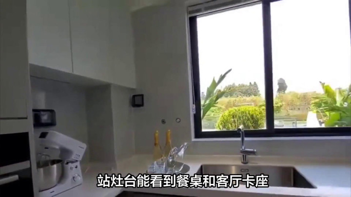 ·厨房和卫生间厨房近乎半开放,折叠门全开,站灶台能看到餐桌和客厅卡座。狭长厨房延伸出生活阳台功能,洗衣机嵌入橱柜成高低台,烹饪、洗衣晾晒都方便,让小厨房功能齐全。卫生间门开在餐桌旁,马桶在小隔间,有隐私感。背面小窗通厨房,算半个明卫。洗手池在转角,旁有小矮架收纳洗漱护肤品。