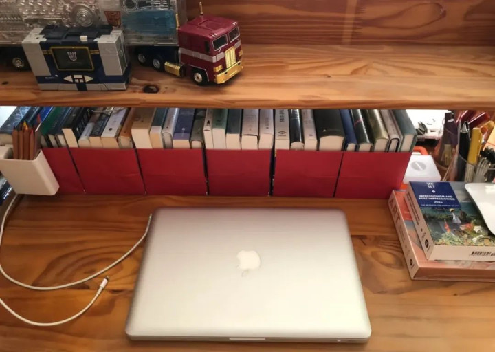 除了当置物篮,还有一种同样的做饭,去掉手提带,变成书框,环保又有创意,还能自己根据书桌的颜色搭配色系。