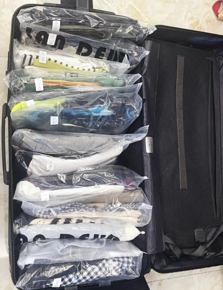 出去旅游时,家里每个人的衣服、每天的穿搭都会分门别类,用单个拉链袋隔开,再整齐的排列在行李箱里,既利用好行李箱空间,又好收好放