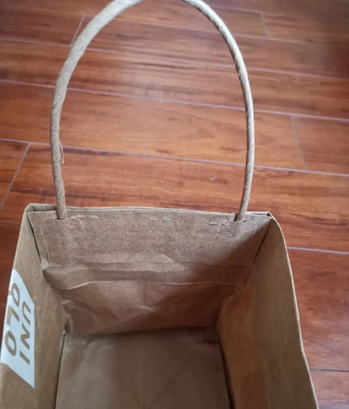 先将手提袋上方的手提部分剪掉,留下的高度根据个人需要裁剪。