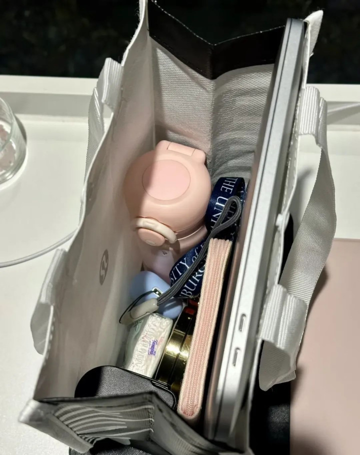 有一些特别高颜值,或者代表个性的购物袋,可以直接用来当出门包使用,喜欢用lulu的是爱运动人士,喜欢用奶茶袋的是美食爱好者等等。