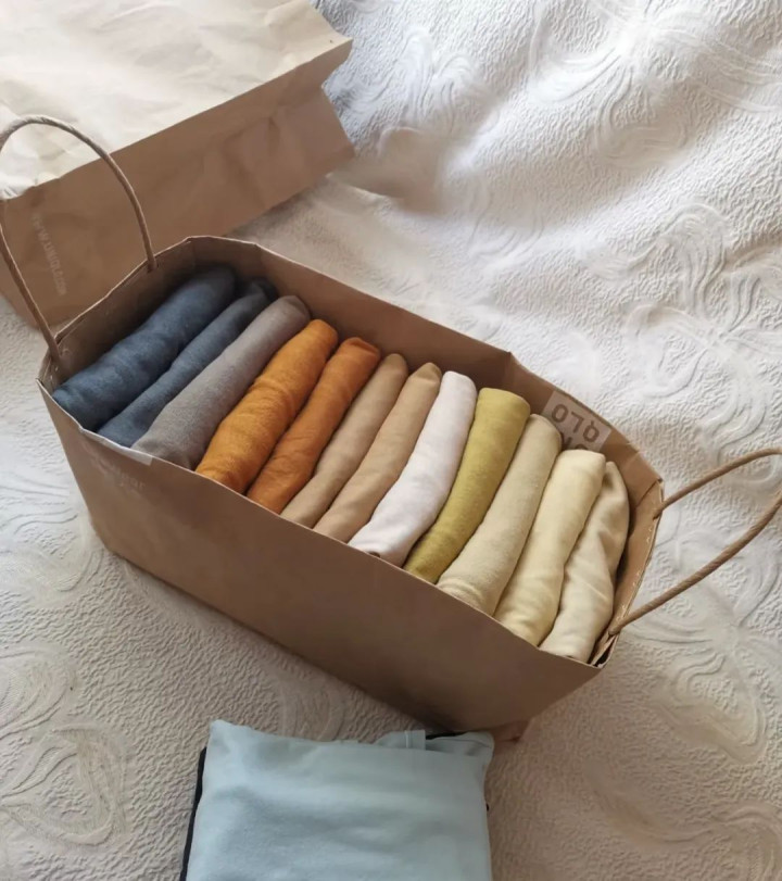 可以用不同颜色的手提袋分装内衣/外衣/袜子,避免混洗。