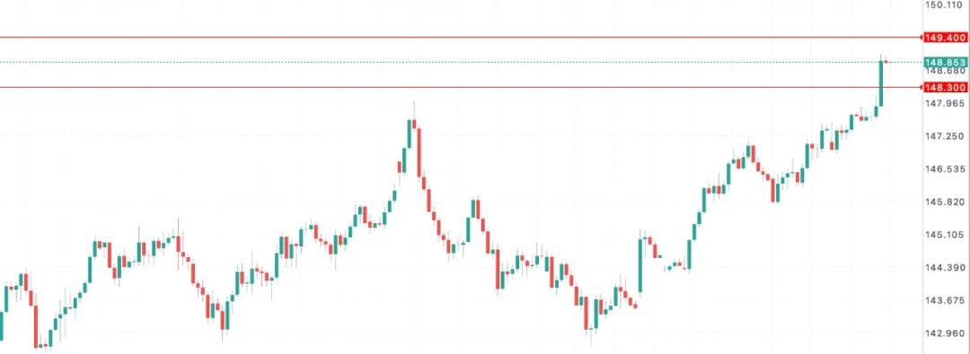 需要注意的是,日内汇价若无法站稳于148.65水平上方,需警惕汇价回调至148.30区域的下修风险,若汇价进一步失守该水平,则修正风险将扩大至(145.75-149.02)上行趋势中斐波纳奇38.2%回撤目标147.75水平。